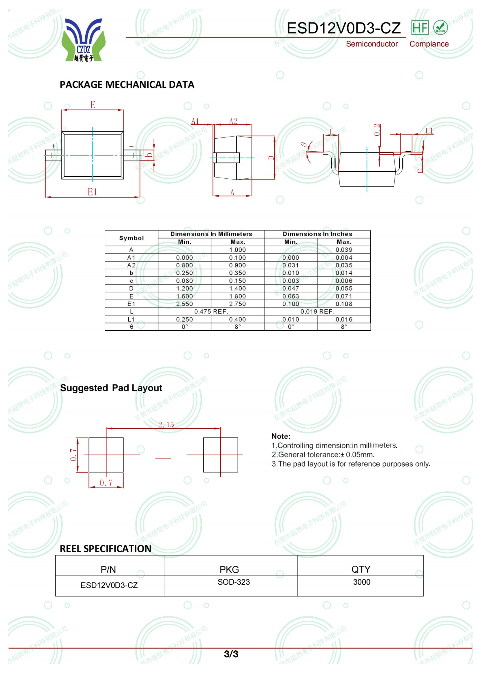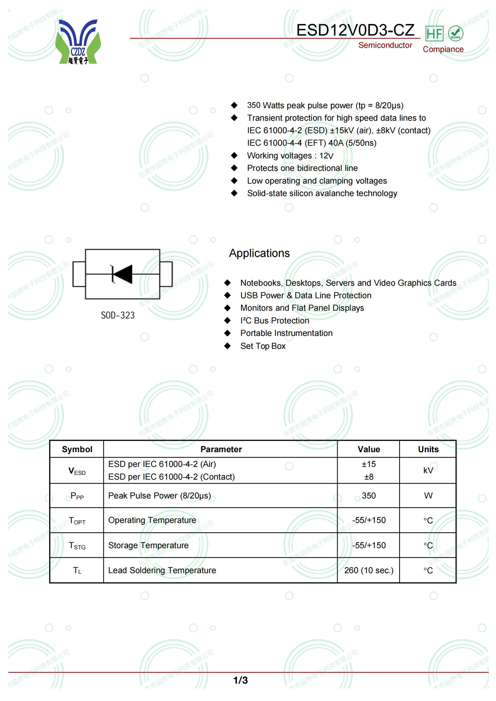 標簽: ESD二極管:ESD12VD3 12V SOD-323
