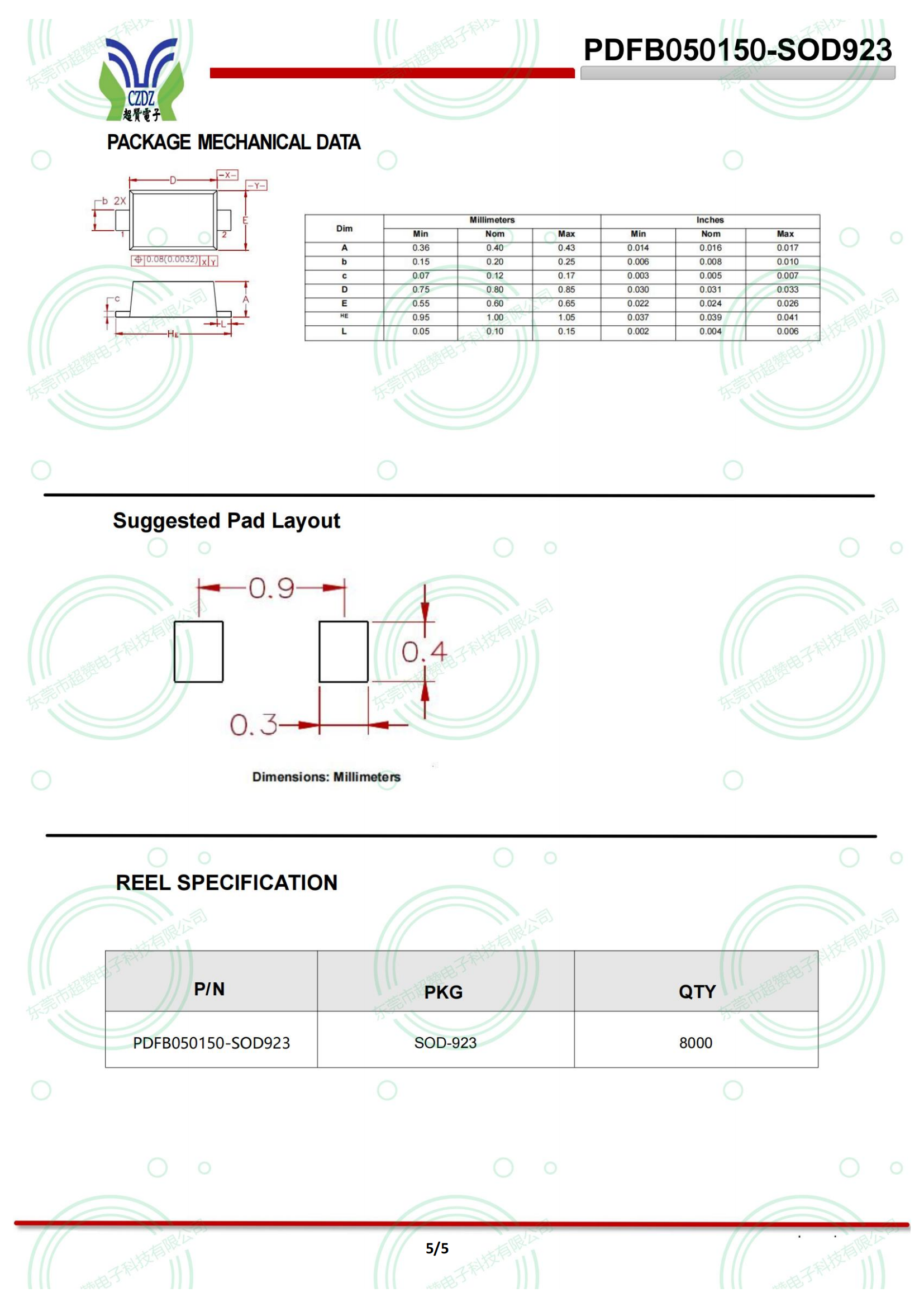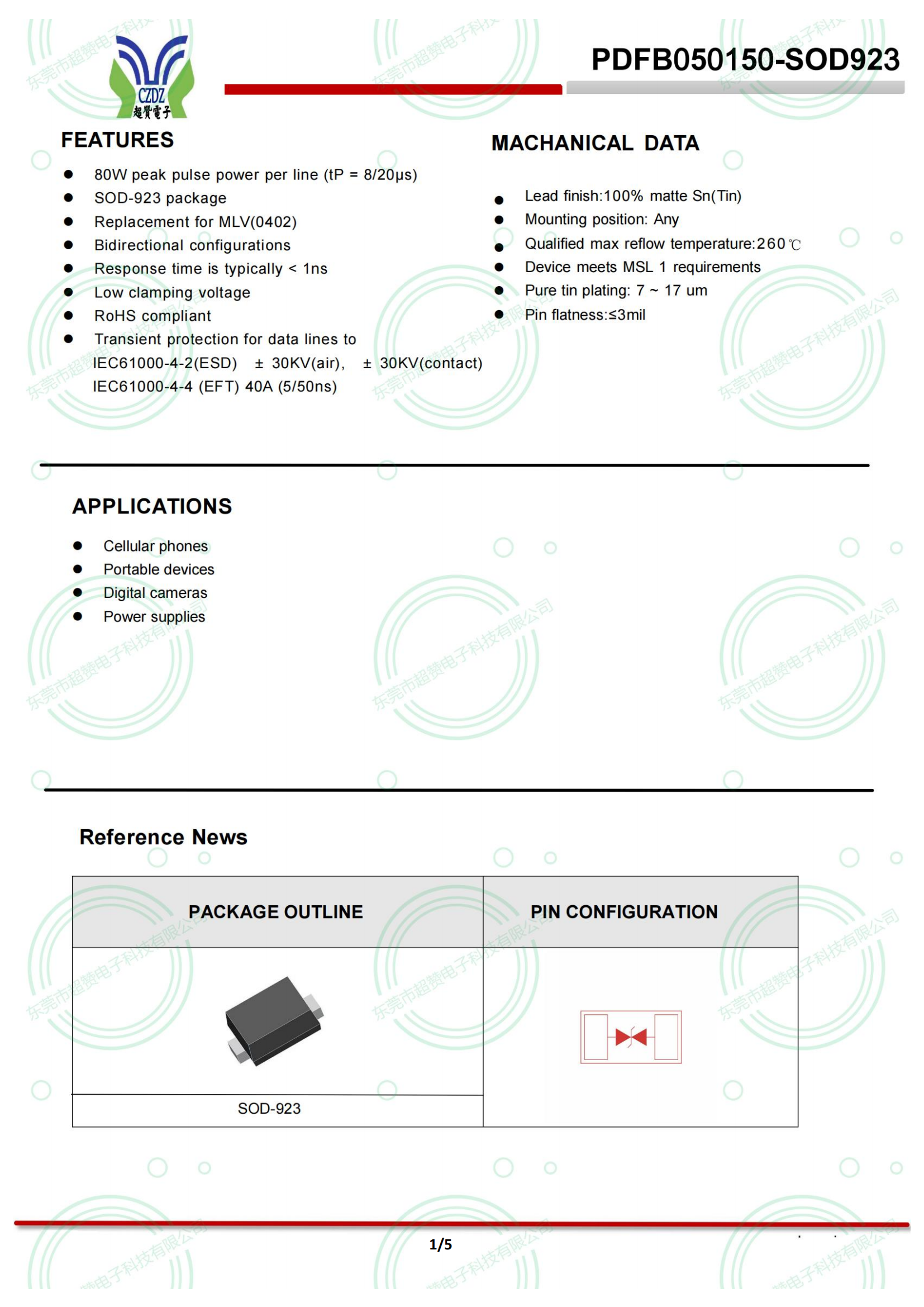 標(biāo)簽: PDFB050150-SOD923 TVS二極管